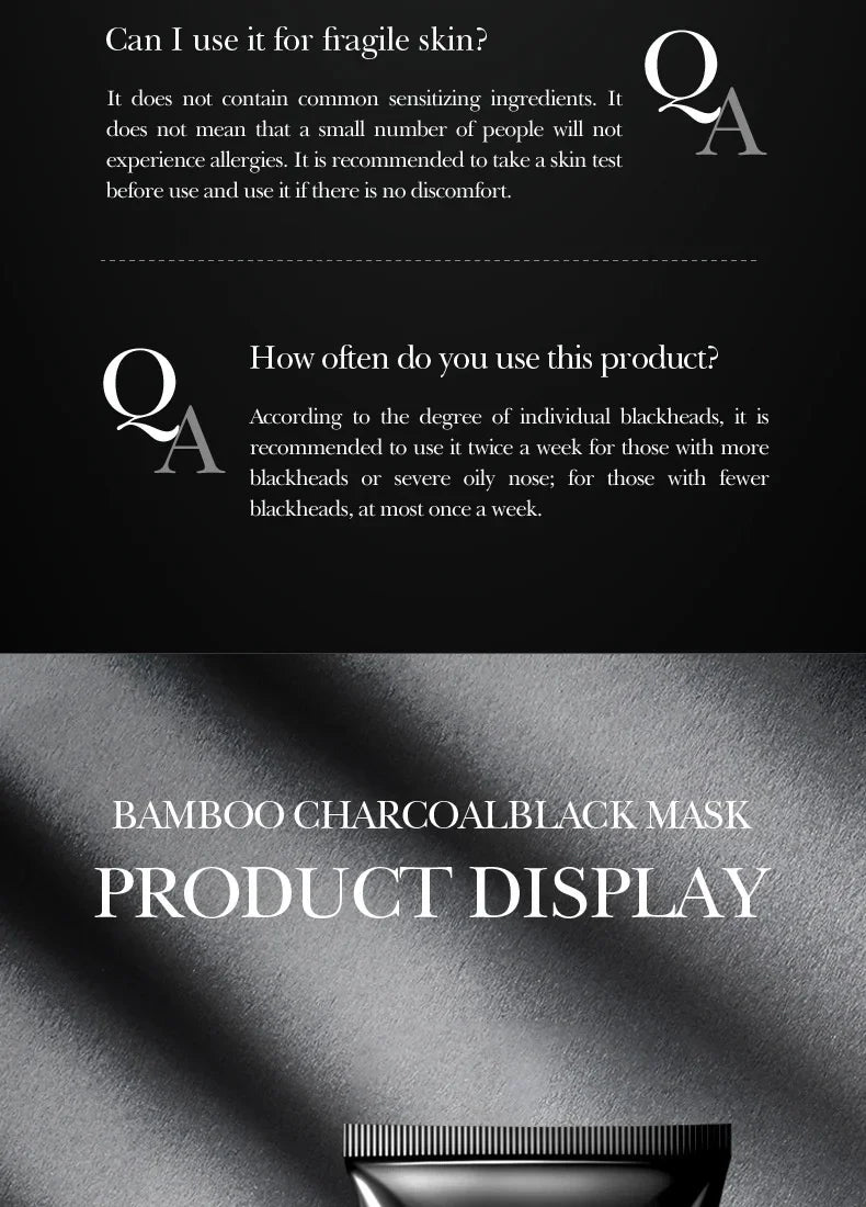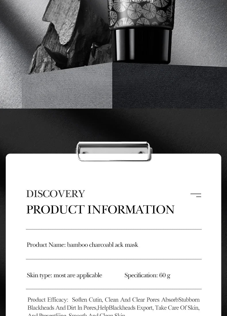Blackhead Remover Mask harnesses the natural detoxifying power of bamboo charcoal to deeply cleanse pores