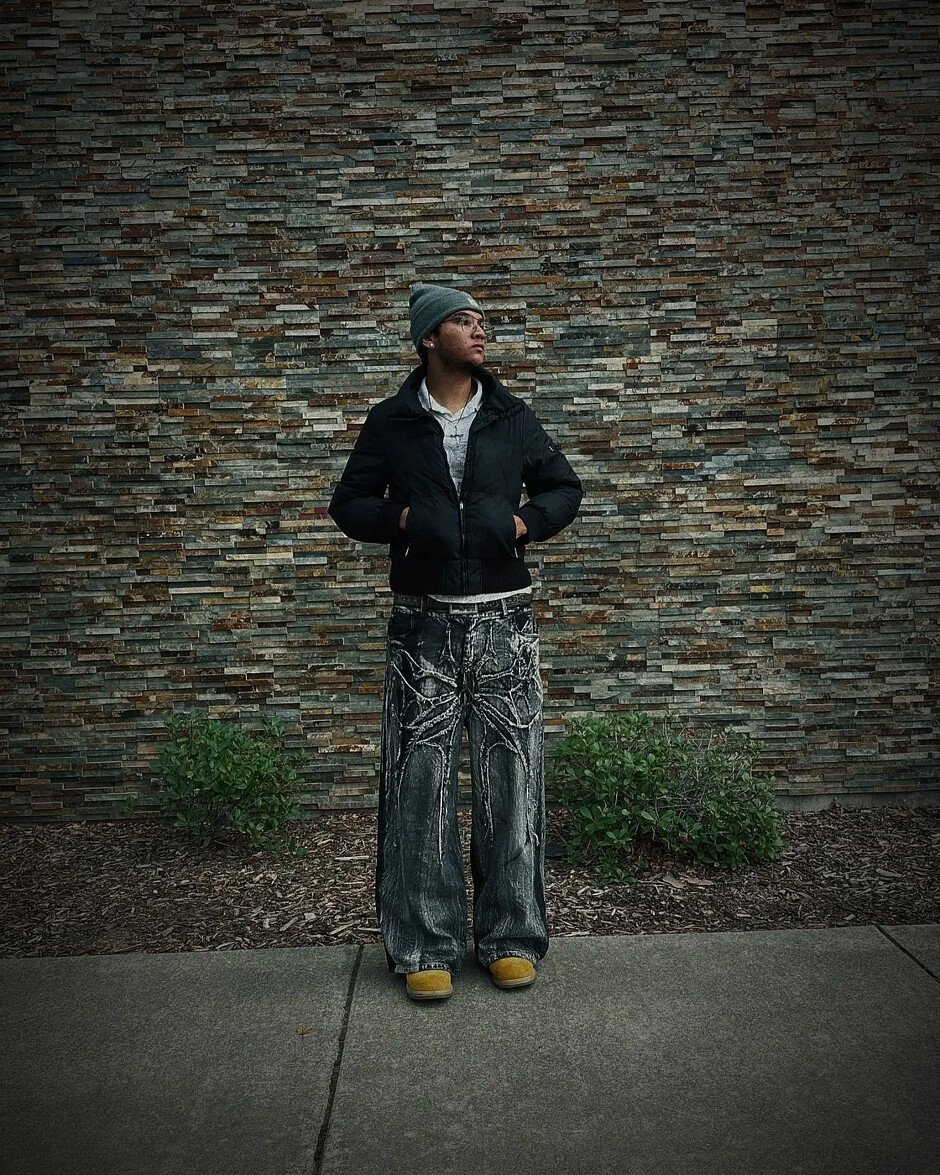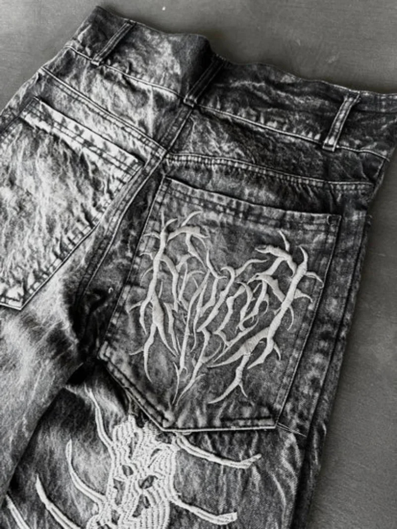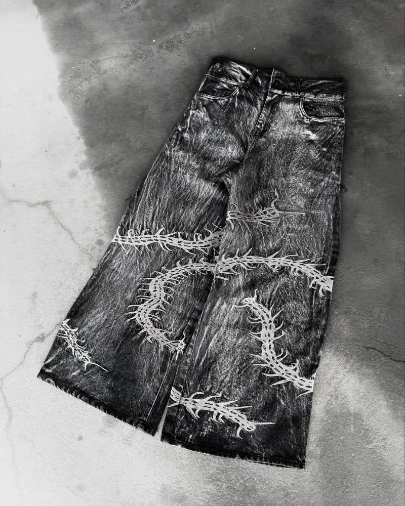 Explosions Jeans Y2k Dark Line Design Sense Wide Leg Pants Street Loose Pants Tide
